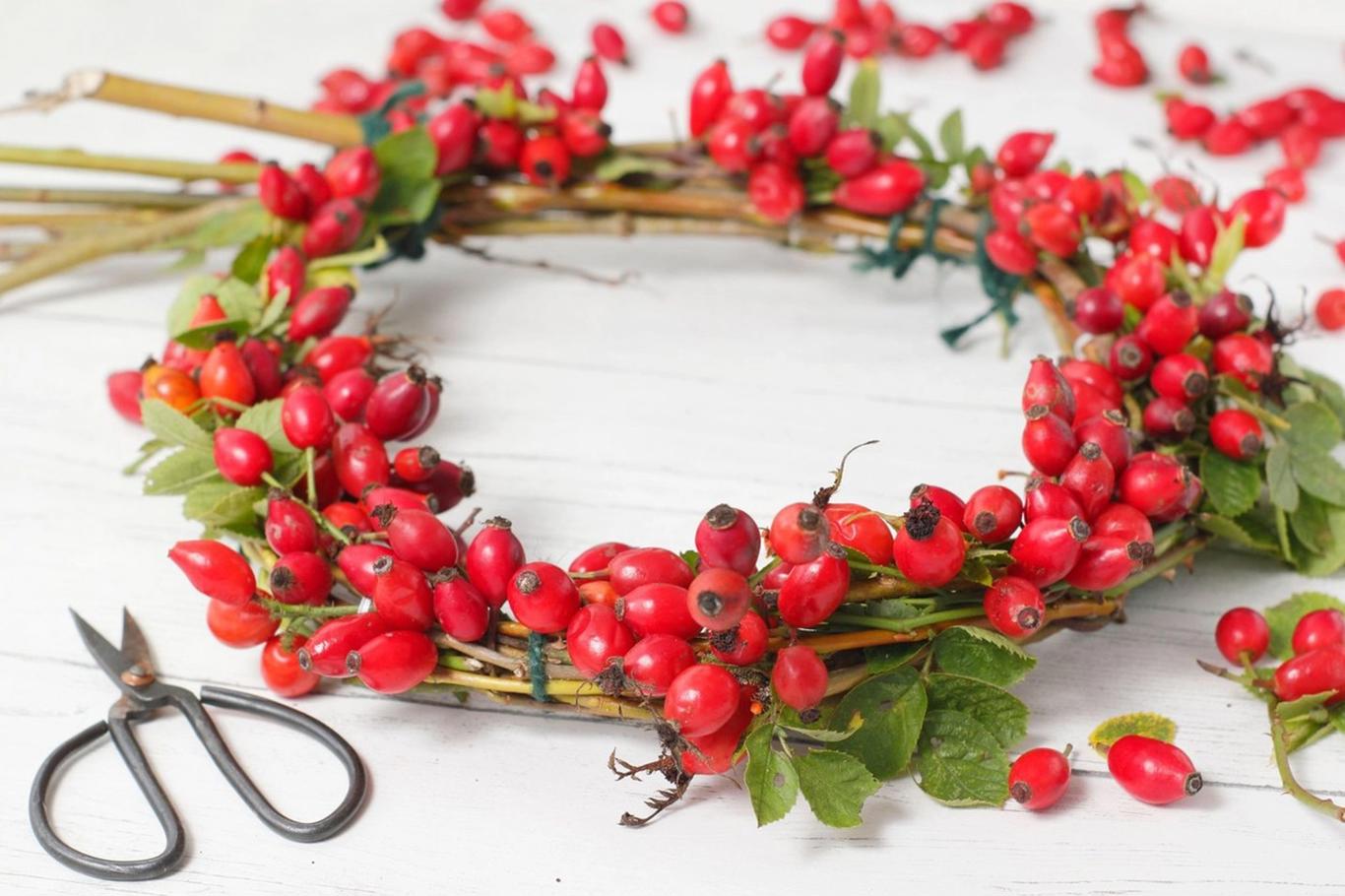 Őszi csipkebogyó koszorú