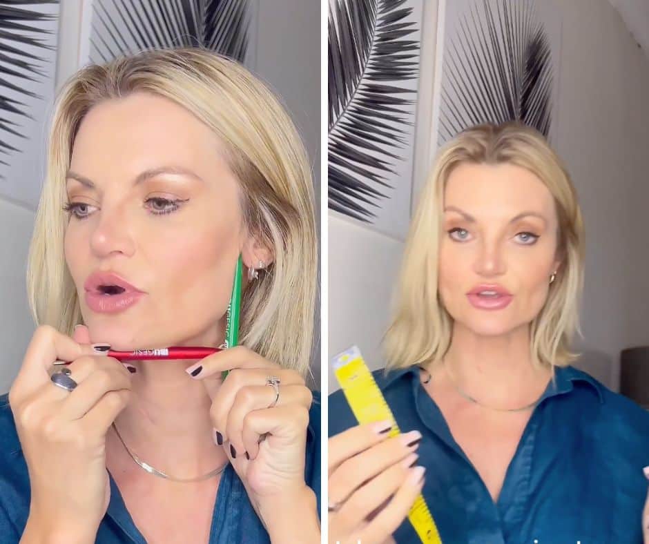 @jen_x_style_beauty Instagram-felhasználó közzétett egy tippet, hogyan találhatod meg a számodra legmegfelelőbb hajhosszt. Két ceruzára vagy tollra és egy mérőszalagra lesz szüksége. Tartsa az egyik ajkát függőlegesen a fülcimpától lefelé, a másikat pedig vízszintesen az álla alá. Derékszöget kell alkotniuk. Vízszintesen tartva a tollat húzzon egy vonalat arra, amelyet függőlegesen tart, és távolítsa el az arcától. Mérjen meg egy centimétert, és mérje meg a távolságot a toll tetejétől a megjelölt vonalig.