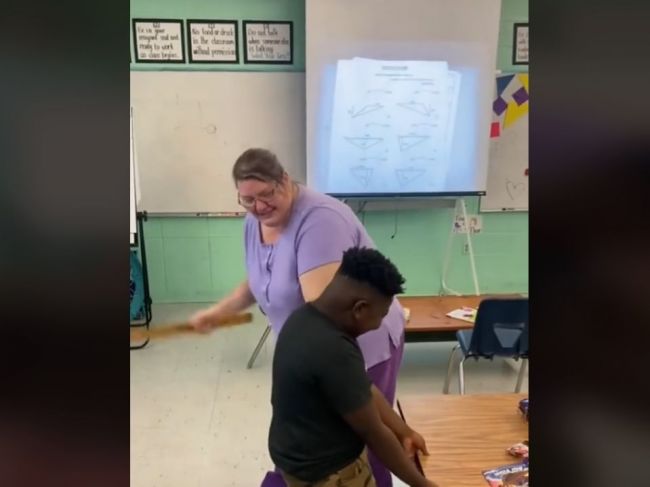 Egy általános iskolai tanárt videóra kaptak, aki úgy tett, mintha egy fa vonalzóval megütötte volna az egyik diákot, aki aznap ünnepelte a születésnapját.