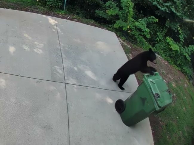 Egy észak-karolinai férfi furcsa tevékenységet vett észre az udvarán. A felkerült felvételeken a medve a hátán állva az ajtó előtti szemeteskukát manipulálva látható. A videóból úgy tűnik, mintha a kis medve segíteni akarna a férfinak kivinni a szemetet.