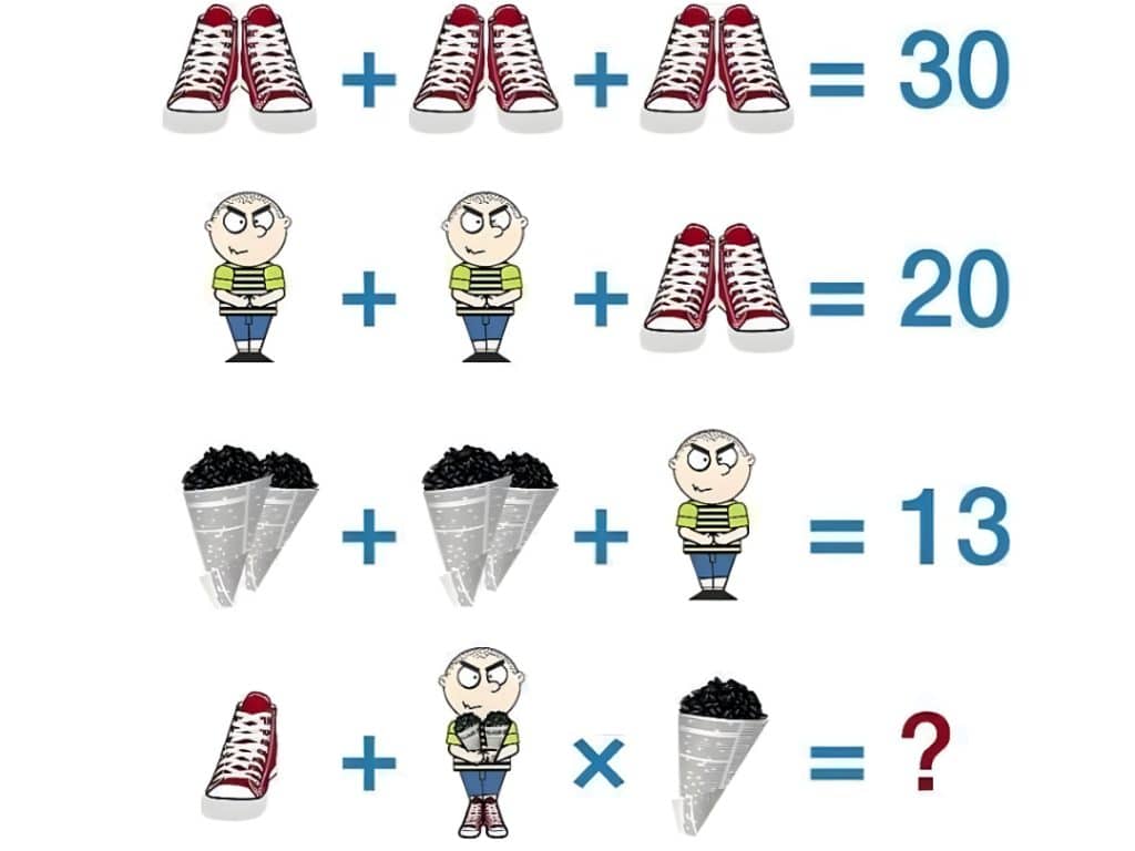 Egy matematikai rejtvény terjedt el az interneten, és sok reakciót vált ki az emberekből, akik megpróbálják megoldani. A puzzle egy fiút, ételt és egy pár cipőt tartalmaz. Csak annyit kell tennie, hogy megtudja a hozzájuk tartozó értékeket, és felhasználja őket a rejtvény megfejtéséhez. Készen állsz a megoldásra?