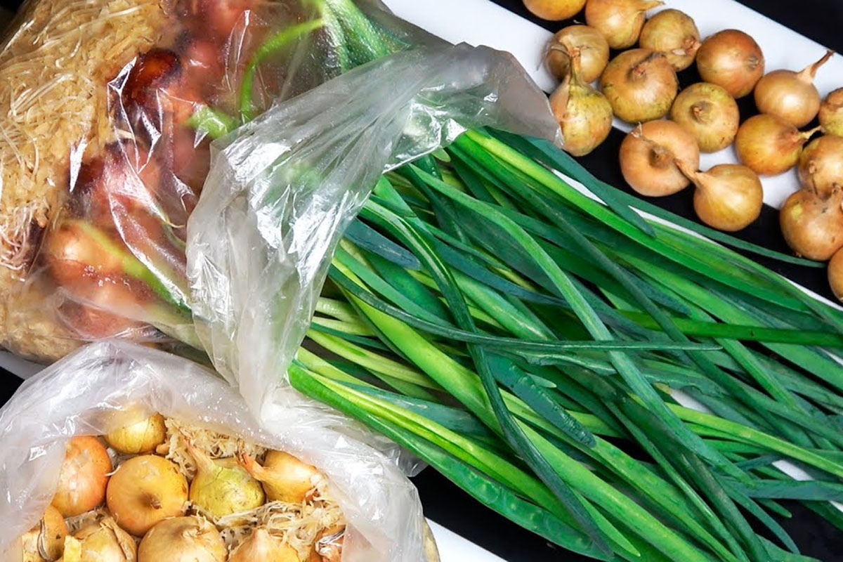 A hagyma „szállítószalag” folyamatosan fog működni, ha kéthetente zacskóba ülteted a hagymát.
