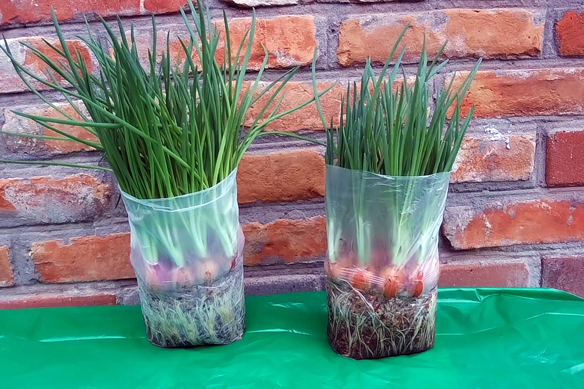 A hagyma „szállítószalag” folyamatosan fog működni, ha kéthetente zacskóba ülteted a hagymát.