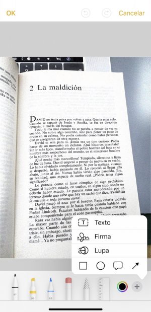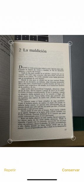 A kamra automatikusan megnyílik előtted, ami ezután úgy működik, mint egy lépcső. Úgy kell fókuszálnia, hogy a szöveg éles és jól eltalált legyen „Automatikus” hogy a telefon maga válassza ki a szöveget, vagy lenyomhatja az exponáló gombot. Egyszer kész, jól állítsa be a margókat ujjaival válassza ki, mit szeretne megjeleníteni. Ha elkészült, kattintson a «Tart”.